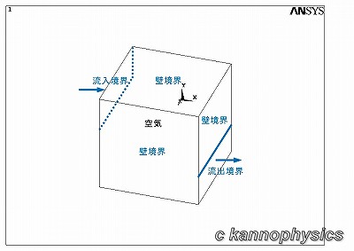 計算例「流体:立方体領域の空気流入出(3次元) 190302」
